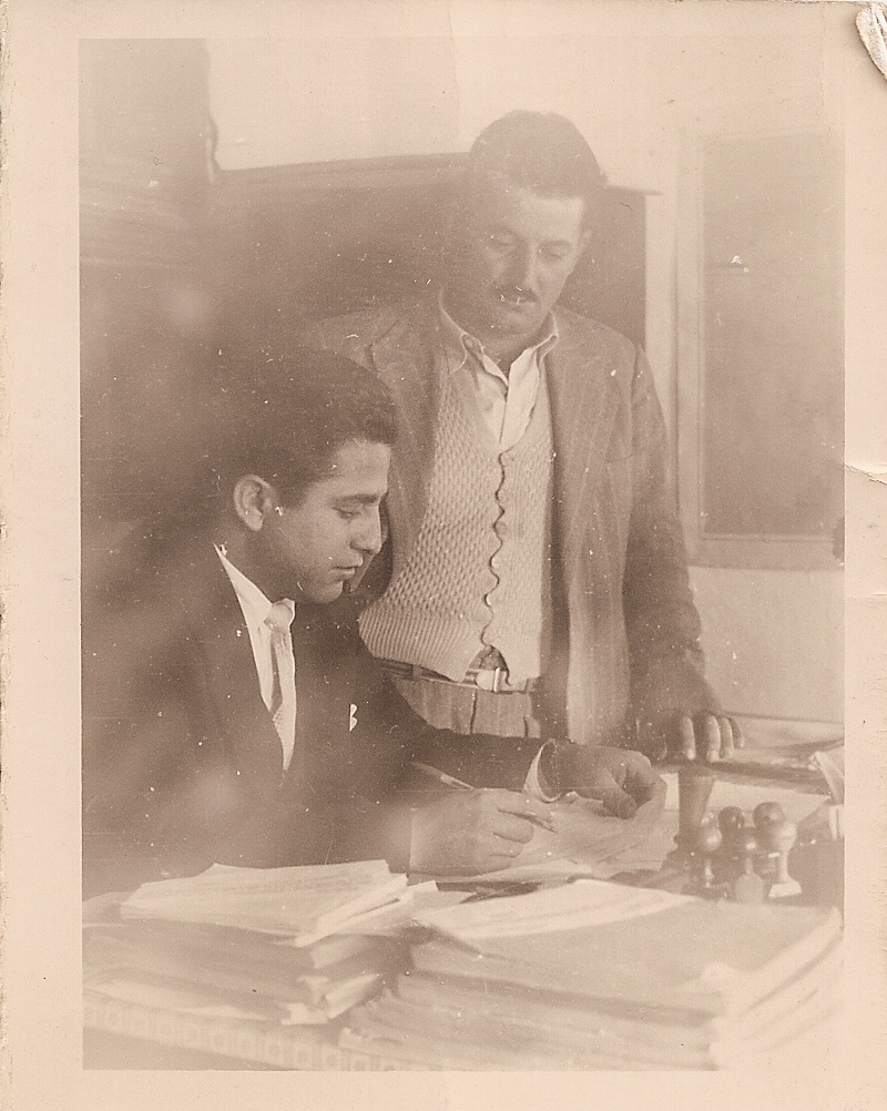 Γιώργης Σιδερής (Σιδεροέργης) σε ώρα ελέγχου του Ταχυδρομείου Κωμιακής από Επιθεωρητή Ταχυδρομείων.